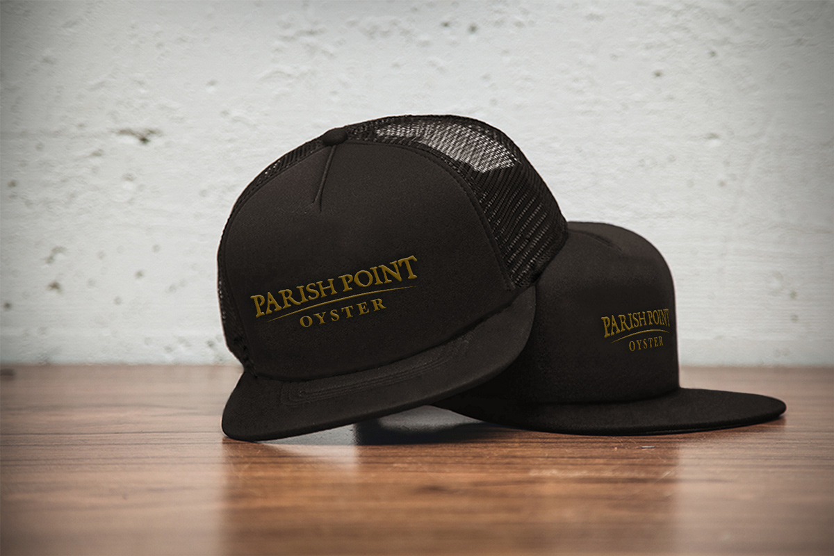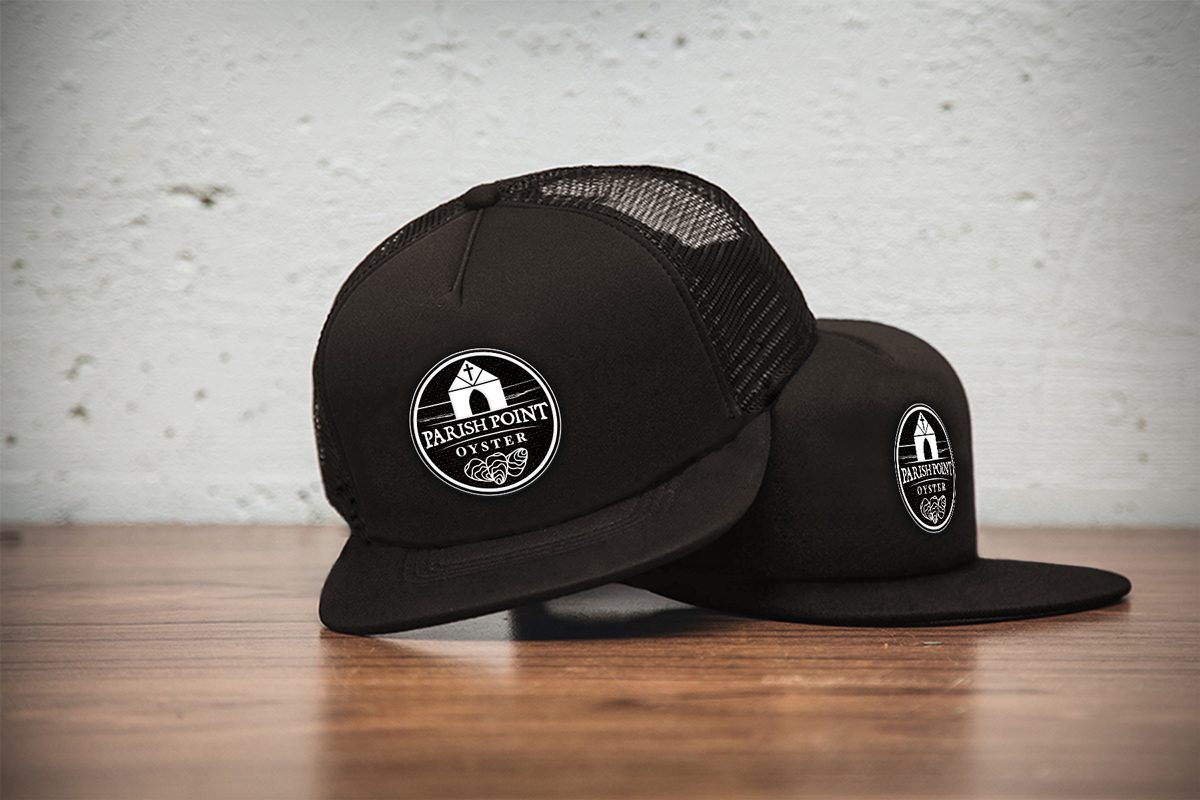 Trucker-style mesh back ball cap. Snap-fit, one size fits all. Black with circle logo or type-only logo.