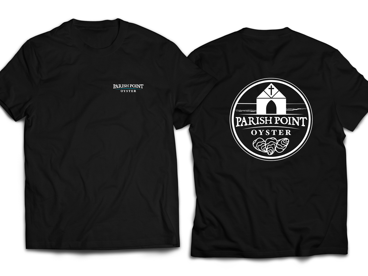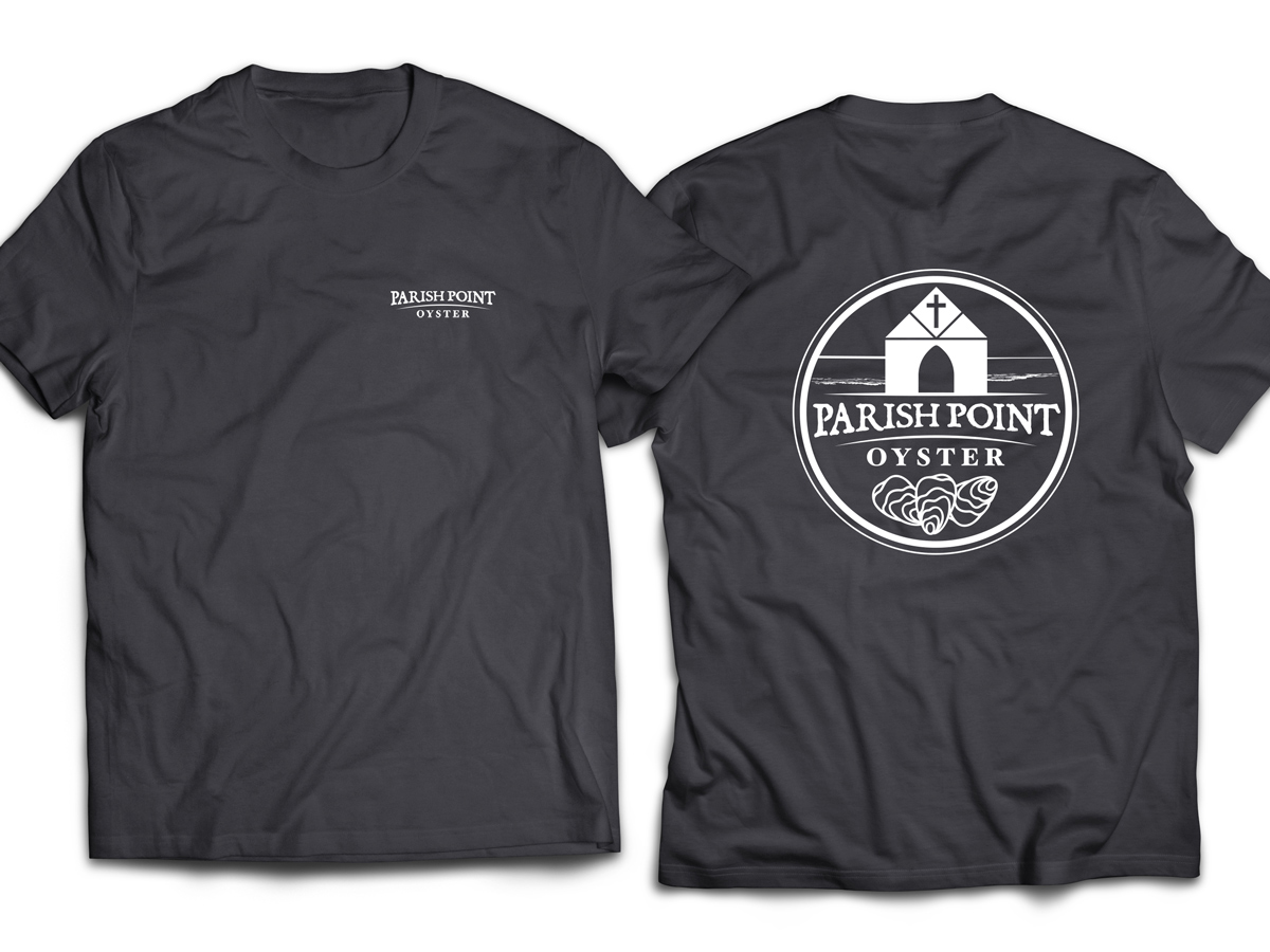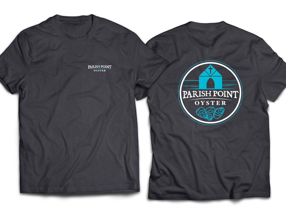 Cotton blend T-shirts with the Official Parish Point Oyster logos on the front and back. Available in black, brown, and gray with a choice of blue/white logo or all white logo.